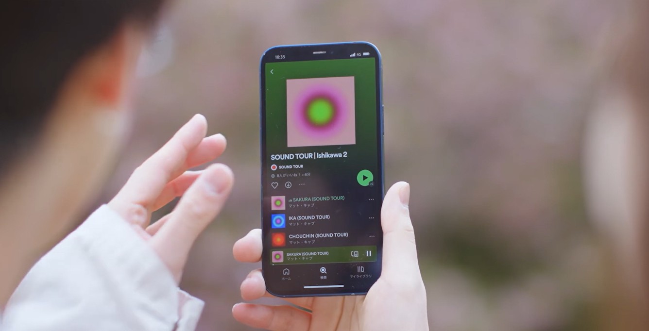 为了让人们与当地文化重新联系起来,创造新的沉浸式体验,Spotify Japan发起了一个名为Sound Tour的活动。在线上,这是一个音频播放列表集合。在线下,则是几个置身于热门旅游景点内的户外装置Spotify Code——它们由当地工匠根据该景点的视觉特性构建,使得这些装置能够自然无缝地融入该地点。人们只要“扫一扫”Spotify Code,就可以获得甄选出的音频列表,开启一场视听盛宴。