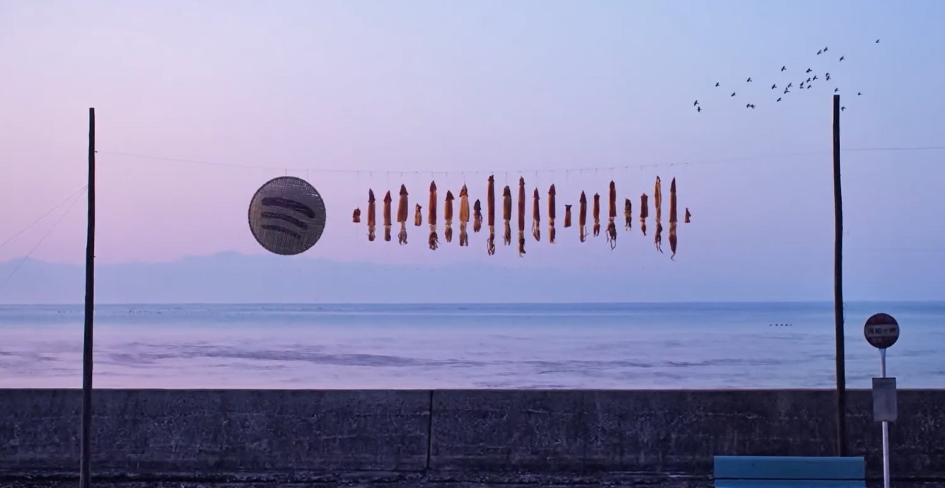 在以鱿鱼闻名能登半岛,当地居民充分发挥了靠海吃海的优势。在岛上,可以常常看见刚捕捞上来的鱿鱼、晒干的鱿鱼、被剁成块的鱿鱼——以及作为Spotify Code的风干鱿鱼。